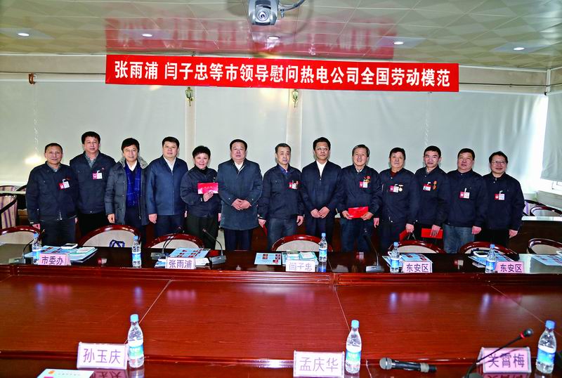 1月22日,市委書記、市人大常委會(huì)主任張雨浦,副市長(zhǎng)、市公安局局長(zhǎng)閆子忠代表市委市政府到我公司慰問全國勞動(dòng)模范,為勞模們送來慰問金,并借此轉(zhuǎn)達(dá)了對(duì)全市各級(jí)勞動(dòng)模范及其家屬的新春?jiǎn)柡?。市總工?huì)、市委辦、東安區(qū)等領(lǐng)導(dǎo)陪同慰問。